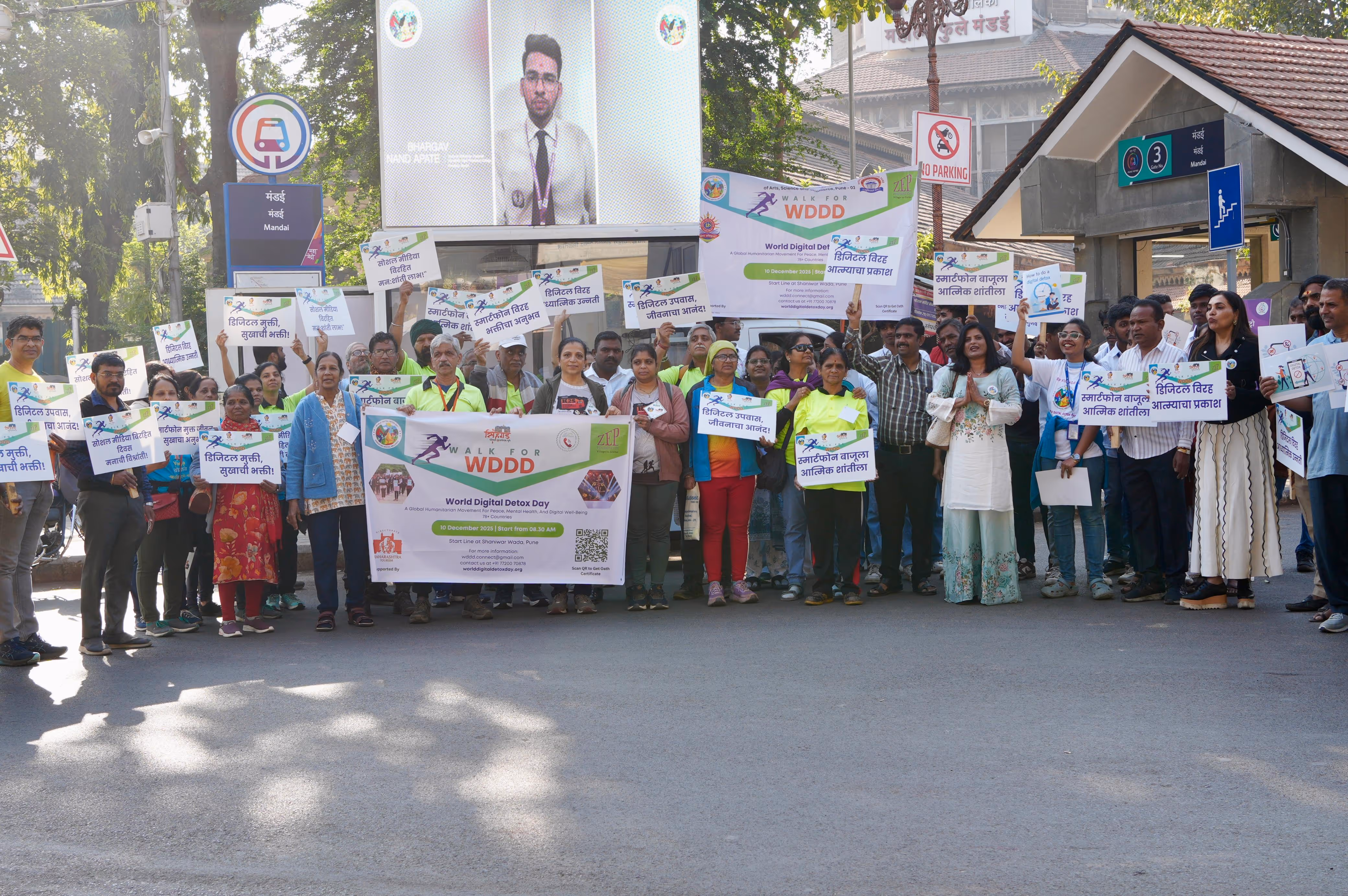 The Walk for World Digital Detox Day (WDDD) held in Pune witnessed enthusiastic participation from students, citizens, volunteers, and community leaders, all united by one shared purpose — to encourage mindful technology use and promote mental well-being.